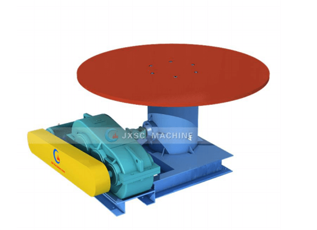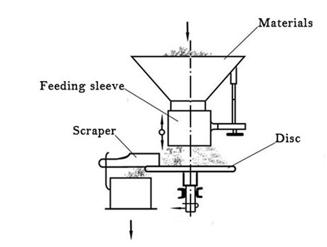 Bulky materials entering into the cylinder from the hopper. The motor drives the disc through the coupling and reducer. When the disc rotates, the material in the silo moves with the disc and moves to the side of the discharge port, and the material is discharged through the gate or scraper. The size of the discharge can be adjusted by a scraper device or a gate.