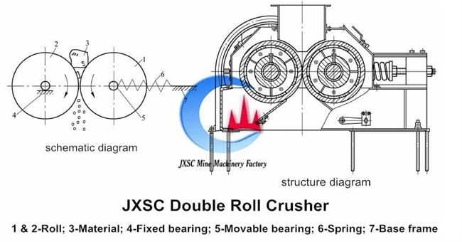 Double roll crusher is used for the crushing or medium-hard rock as well as for sticky and soft materials, i.e. iron ore, quartz stone, rock gold, rock tantalum niobium ore, rock tin ore, rock tungsten ore, manganese ore, ilmenite ore, potash albite, limestone, river pebble, copper ore, bauxite Ore, barite, basalt, etc.