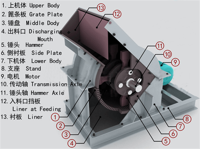 Hammer crushing is mainly composed of hammer crusher casing, rotor, hammer, counterattack liner, sieve plate and so on