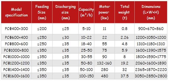 The crushing ratio is large (usually 10-25, the higher one is 50); The process is simplified; One-time feeding, no need for primary and secondary crushing; High output; Uniform product; Reliable performance and large processing capacity.
