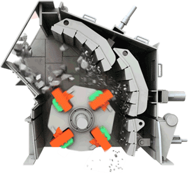 When the impact crusher is working, electric motor drives the rotor to rotate at a high speed. Then the material enters the crushing chamber along a controlled feed angle. The hammer hit the material to the impact plate. Impact crusher supplies a sudden impact force that causes the material to shatter along all the weakest fissures in the stone. The hammer hammers the material repeatedly and the material would be crushed again and again in crushing cavity until it meets the requirement. Then the impacted material exits the crusher through the base frame.