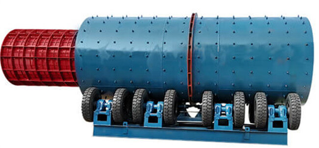 The cleaning cylinder of the Trommel Scrubber is supported by four tugs. The motor drives the reducer, and the pneumatic tire drives the cleaning cylinder to rotate at a low speed. The material containing slime enters the rotating drum from the feed port. The drum is generally equipped with wear-resistant rubber lining plates or welded spiral steel sheets, and the material hits the rubber lining. The slab or spiral steel sheet separates the mud. After repeated cycles, it will be washed by reverse or forward flushing water. The cleaned material will pass through a cylindrical sieve for preliminary screening, and the waste rock will be screened out. The under-screened material will enter to the next device. Waste water containing sludge will be discharged through the discharge port.