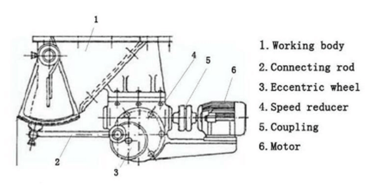 The pendulum feeder is composed of working body, connecting rod, eccentric wheel, speed reducer, coupling, motor, etc.,
