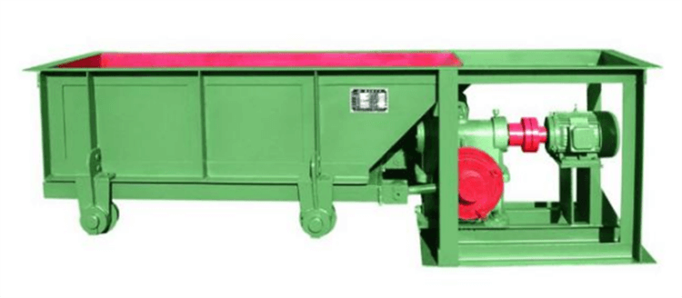 Trough feeder is also known as chute feeder. It is a kind of feeding equipment used earlier in ore storage tank discharge. There are many types, and the common point of their structures is that they are all equipped with adjustable ram which can control the height of material layer. The lower part of the feeding trough is a feeding plate which moves back and forth. The difference is that the angle of the feeding plate is different. Generally, the feeding plate is inclined downward by 5 degrees along the discharging direction, or with a larger angle (less than the static stacking angle of the material), or a horizontal type with zero angle.