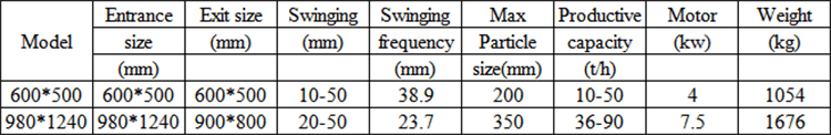 The trough bottom plate of the trough feeder is reciprocating, and its impact times are 20-60 times / min and the stroke is 20-200mm. The most commonly used model of our chute feeders is 980 * 1240, whose max feeding particle size is 350mm. This model feeder is suitable for the feeding equipment of 400 * 600 jaw crusher.