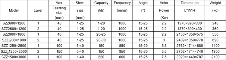 Our vibrating screen can make single, double, three and four layers and the screening effect of 2-layer screen is the best. Our screen has higher screening efficiency and productivity because of the strong vibration of the screen box reduce the material blocking the screen holes. Meanwhile our vibrating screen is with simply structure and it’s convenient to remove and replace the screen surface. It also has the feature of less power consumption of per ton of material. So our vibrating screen has a considerable market share.